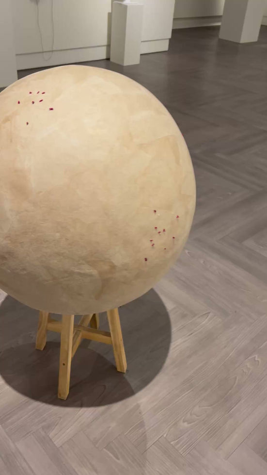 Viewers bend and shine light into the sphere, shifting perspective so interior threads cast moving shadows, making visible what the exterior keeps illegible. The work critiques systems that privilege surface legibility over lived complexity. The crisscrossing threads enact a defiance of fragmentation, offering a vision of plural interdependence. The project subverts conventional mapping and challenges borders presented as fixed, exposing the fluidity and complexity of human connection.